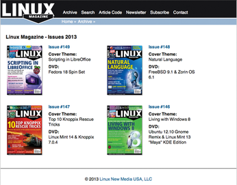 If you're new to this magazine, take a tour and let's get acquainted. If you're a long-time reader, now is your chance to find that issue or article you missed. The DVD attached to this issue comes with the latest edition of the Linux Magazine archive – 149 issues of technical Linux, spanning a history of more than 12 years. All the tips, all the apps, all the hacks … . If it matters to the open source community, chances are we've documented it somewhere. You'll find in-depth articles on important tools such as Drupal, Apache, Nagios, Tripwire, and Samba. Or discover a lesser known tool that might be just what you need for a problem you're facing right now. Build a deeper understanding of Linux by reading the complete history of Klaus Knopper's troubleshooting advice, and chart the story of the Linux kernel through Zack's Kernel News.