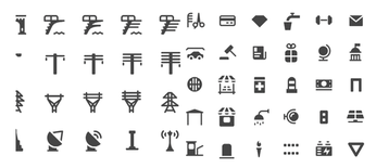 The Map Machine icon set aims to display as many map features as possible, because the original idea behind the project was to show all the richness of the OpenStreetMap data. Figure 1 shows just a small part of the complete icon set, and yet it covers features as diverse as barber shops, diving platforms, power lines, trellises, and mailboxes.