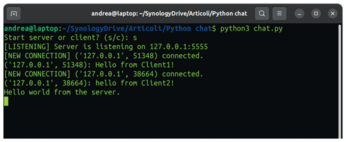 To demonstrate multi-client functionality, open a second terminal window and start another client by running the script and selecting the client option again. The server will log this new connection with a similar message, such as
