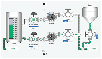 There are some great components for showing tables, gauges, and charts on Internet of Things (IoT) dashboards. For many applications these data widgets are all that you need – however, for industrial or process monitoring projects, it can be extremely helpful to add dynamic visual layouts of the equipment. Figure 1 is an example of a process automation screen that could be used for an industrial control system.
