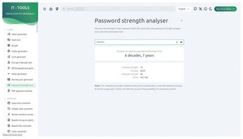 The Crypto category is where you will find tools for encryption. Among other goodies, the list includes a Token generator that creates random character strings ideal for creating passwords based on your specifications. Password strength analyser shows how long it would take a brute-force attack to expose a password (Figure 1). One interesting thing is how adding just one more character to a password boosts its security. This section also includes an RSA key pair generator, various tools for text encryption, and a PDF signature checker.