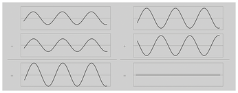 To find useful quantum algorithms, you need to do more than simply trust in parallelism. You need to ensure that the correct result in the superposition has a higher amplitude (corresponding to a higher probability) and that the amplitude of the incorrect value is very low before the measurement. It is significant that amplitudes can have negative signs. This means that interference can occur: Just as two waves cancel each other out where the peak meets the trough (Figure 1), amplitudes with opposite signs can add up to 0. This possibility for interference does not exist for conventional computers.