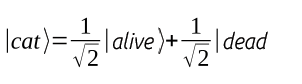 These square equations might seem a bit unusual. In this example, it is only important for the square of the reciprocal of the square root of 2 to give a value of 1/2. This superposition cannot be detected; it only exists until I open the box and measure it. After that, I would find the cat equally likely to be alive and well, or dead. As long as the box remains tightly closed with no contact with the outside world, the state continues to remain in limbo.